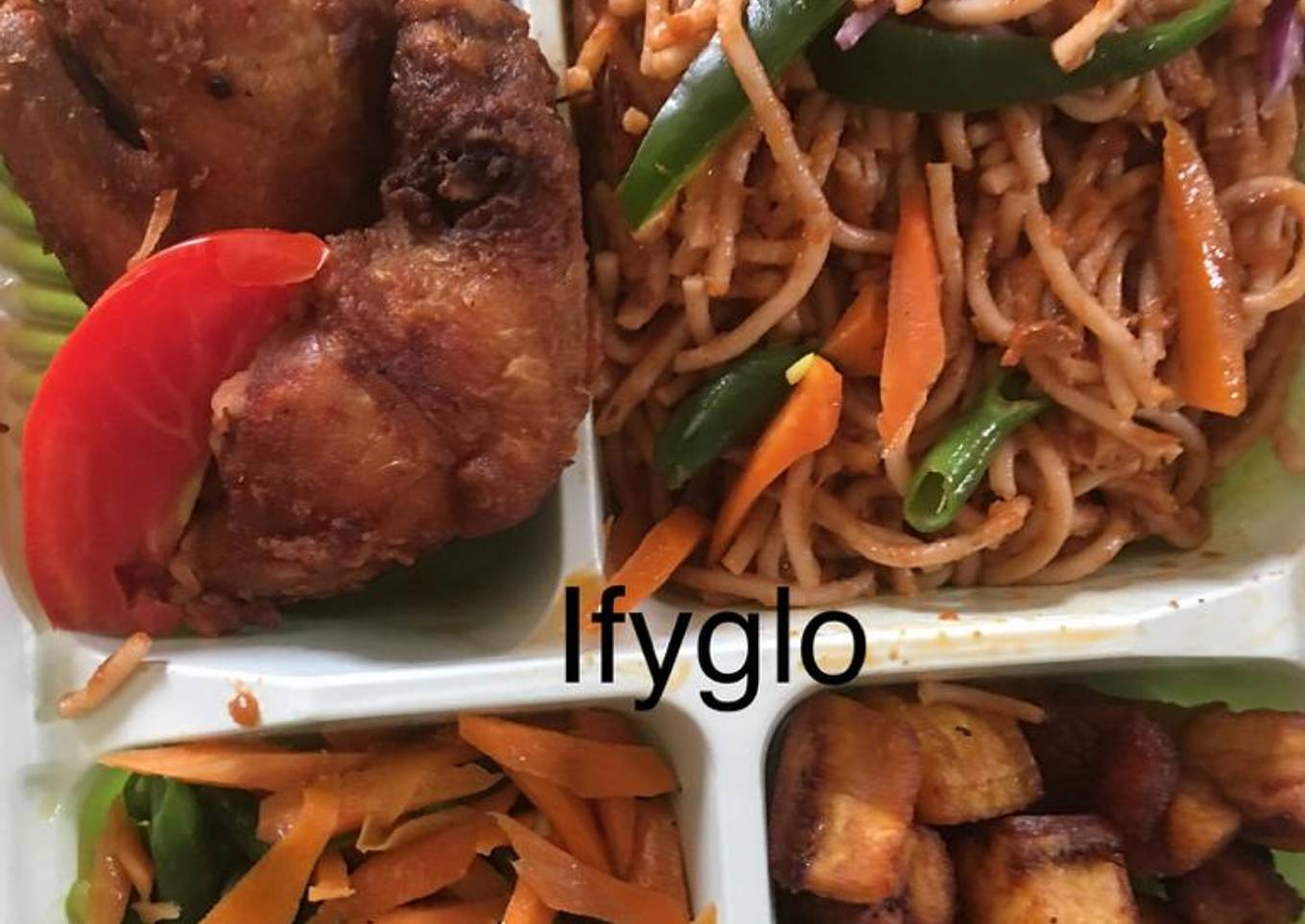 - Parboil the spagetti and rinse.fry tomatoes,pepper,onion in vegetable oil.add salt,mixed spices,tumeric and water bring everything to boil.add the parboiled spagetti and boil untill is done.dice green pepper and carrots in it.